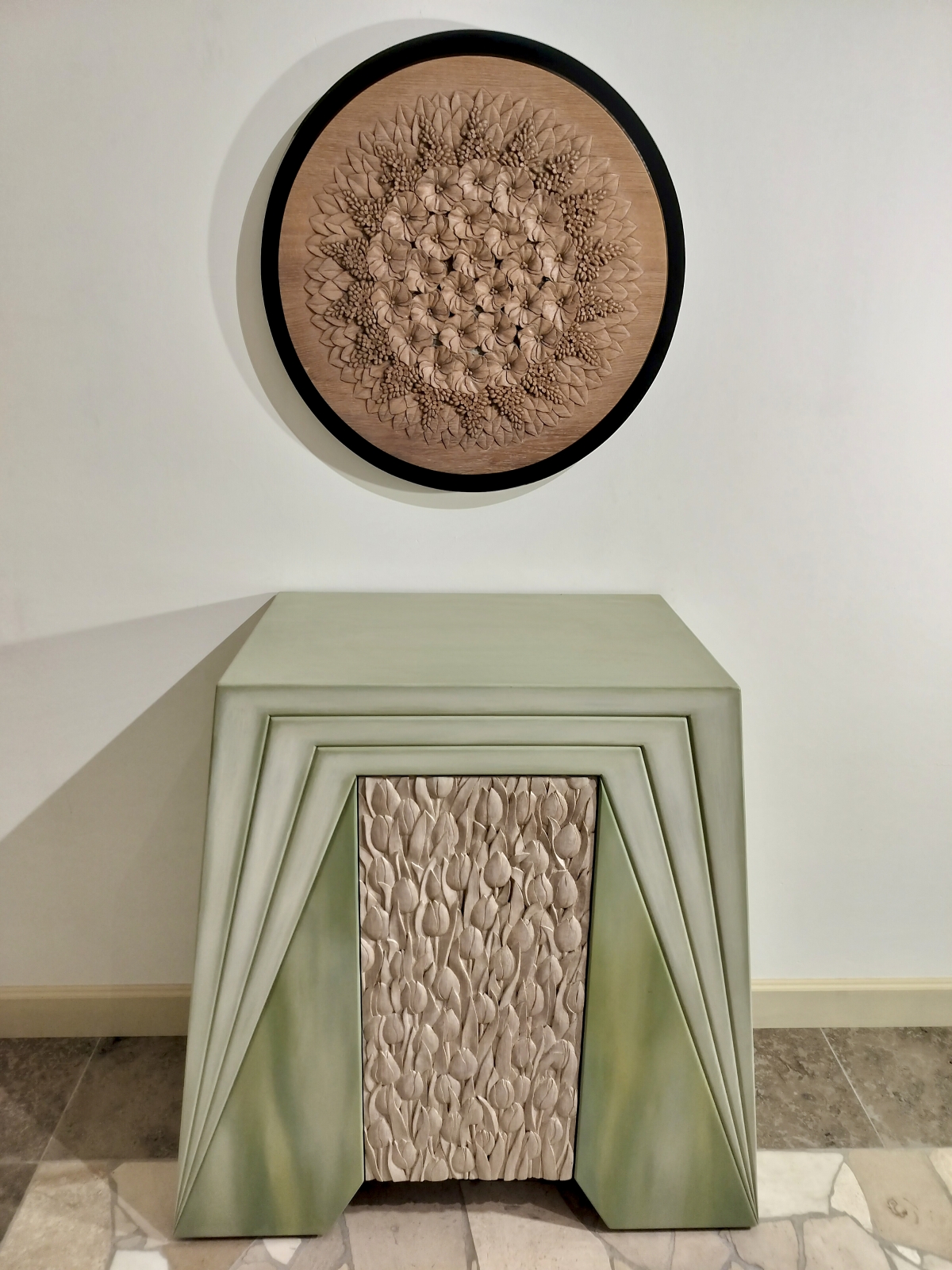 In our studio we create special furniture, sculptures, fine wood carvings, watercolor and acrylic paintings according to our own ideas. We have a spacious showroom/gallery where we permanently exhibit our own work.